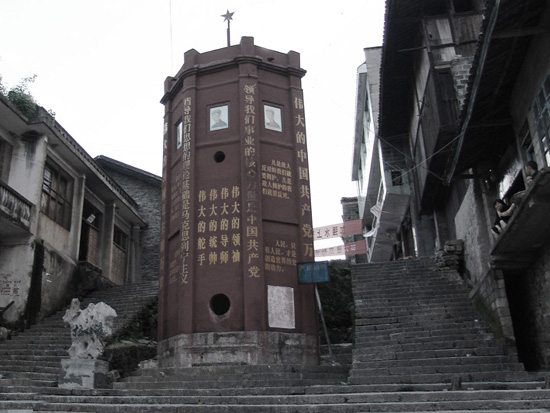 清嘉慶七年(1802),這里建成了一座石堡城,設(shè)東西南北4門,門樓上各有4座炮臺,420個垛口。抗日戰(zhàn)爭時期,蔣介石的殘兵敗獎經(jīng)此地逃往四川。解放戰(zhàn)爭時期,劉鄧大軍也是從這里推進大西南。解放后,城墻城門雖被毀壞,但翠翠島、吊腳樓、石板街依然保存完整。