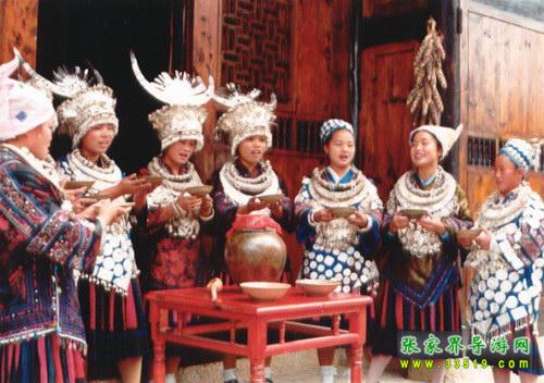 土家人叫槽門(mén),是居住在一個(gè)院落里的土家人公用的門(mén)。每逢喜慶的日子,都要在這里舉行攔門(mén)儀式,以迎接高貴和尊敬的客人。按土家風(fēng)俗,進(jìn)槽門(mén)要對(duì)歌喝酒,如果客人對(duì)歌能勝,就輕松入門(mén),如客人對(duì)歌輸了就得喝攔門(mén)酒后入門(mén)。喝攔門(mén)酒已成為一種迎賓的方式。