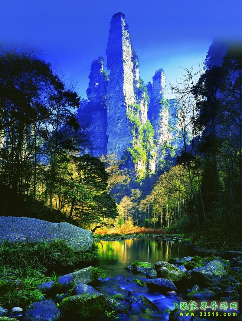 張家界國家森林公園位于湖南省西北部張家界市境內(nèi),是1982年由國務(wù)院委托國家計委批準成立的中國第一個國家森林公園,1992年12月因奇特的石英砂巖大峰林被聯(lián)合國列入《世界自然遺產(chǎn)名錄》,2004年2月被列入世界地質(zhì)公園。公園自然風(fēng)光以峰稱奇、以谷顯幽、以林見秀。其間有奇峰3000多座,這些石峰如人如獸、如器如物,形象逼真,氣勢壯觀。峰間峽谷,溪流潺潺,濃蔭蔽日。有“三千奇峰,八百秀水”之美稱。公園不僅自然風(fēng)光壯美絕倫,而且森林植物和野生動物資源極為豐富,森林覆蓋率達98%,是一座巨大的生物寶庫和天然氧吧,被稱為“自然博物館和天然植物園”。草木禽獸與奇山異水,同生共榮,形成完美的自然生態(tài)系統(tǒng)。