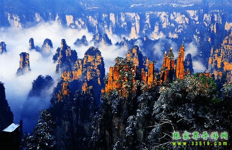 索溪峪風(fēng)景區(qū)索溪峪,西南緊連張家界,西北毗鄰天子山,面積一百四十七平方公里,有景點(diǎn)二百多處。索溪峪山、水、洞自成一體 ,奇峰起伏錯(cuò)成趣;水,泉清瀑美,千姿百態(tài);洞,幽深神秘,其妙無(wú)比。那恍若仙境的地下宮殿黃龍洞,天然浮雕羅列、充滿(mǎn)詩(shī)情畫(huà)意的十里畫(huà)廊,碧波蕩漾的寶峰湖,充滿(mǎn)傳奇色彩的百仗峽及太虛幻境般的西海云霧,一剛一柔、形態(tài)風(fēng)格迥異的鴛鴦瀑 無(wú)不令人流連忘返。遠(yuǎn)在明代中葉,就有人在巖壁題詩(shī)贊曰: “高峽百丈洞云深,要識(shí)桃源此處尋。”
