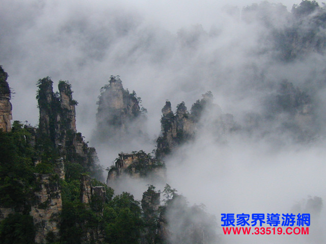 其實,她不難貌若天仙,而且心靈手巧,善于打扮。就拿她的發(fā)型來說吧,恐怕連世界一流的發(fā)型師也望塵莫及。張家界一年四季都適合旅游,四季風(fēng)光各不相同。春天,吹面不寒的楊柳風(fēng)為她剪一頭活潑可愛的男式女發(fā);夏天,一些花草樹木的枝條,為她扎起一條長長的美麗的麻花辮;秋天,她干脆把頭發(fā)染成金黃,儼然一個時髦的金發(fā)女郎;冬天,白雪皚皚,她面容清秀而又滿頭白發(fā),超凡脫俗,好像一位不食人間煙火的仙女。