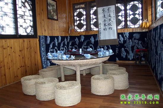 這里有滴水床、石雕、木雕、織錦、挑花、刺繡等,還有玉器、瓷器、陶器等等,可以說集國內(nèi)土家藝術(shù)品之大成。