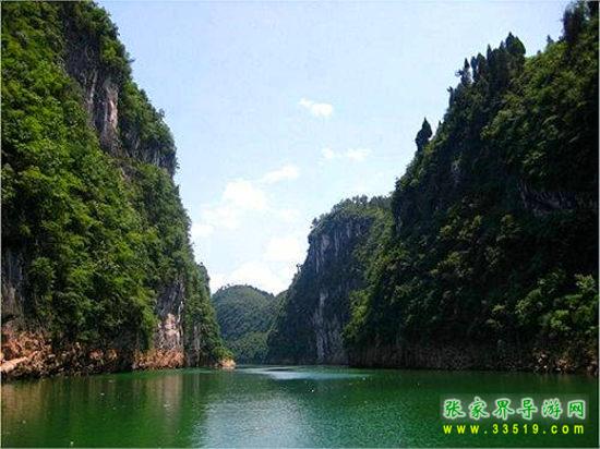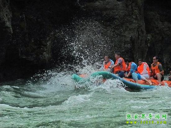 茅巖河漂流段是大庸城西20公里青魚潭往北一段。茅巖河雖灘險(xiǎn)流急,但河床坡度小,水位落差不大;險(xiǎn)灘較短(一般僅20余米長),而險(xiǎn)灘與險(xiǎn)灘間的距離卻較長(一般均逾千米),故浪濤適中,漂流有驚無險(xiǎn)。茅巖河主要景點(diǎn)有:血門溝、洞子坊、茅巖灘、夾兒溝、溫塘溫泉、麻陽古渡、茅巖河峽、水洞子瀑布等。沿河兩岸青山綠水、風(fēng)光如畫,故又稱“百里畫廊”。