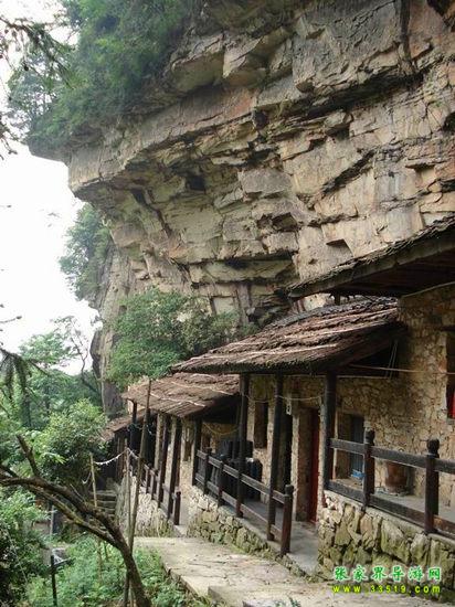 當(dāng)?shù)?a class="insidelink" href="http://www.taohaoxue.com/" target="_blank" title="張家界旅游">旅游局為了吸引游客注意,特地按電影《烏龍山剿匪記》里的土匪窩名字改過(guò)。湘西自古民風(fēng)彪悍,盛產(chǎn)土匪。真正追溯起來(lái),則要說(shuō)到明末。吳三桂引清兵進(jìn)關(guān),趕走了闖王。闖王為東山再起,藏寶烏龍寨上,守寶的將士由民匪變成了山匪。其后,中國(guó)內(nèi)憂外患,民不聊生,匪眾聚嘯山頭,代代相傳。民國(guó)時(shí)期國(guó)民黨剿匪部隊(duì)與據(jù)守烏龍寨的土匪的一場(chǎng)惡戰(zhàn),扔下了三個(gè)營(yíng)的尸體。整個(gè)寨子依山而建,易守難攻。