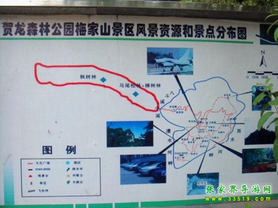 位于桑植縣城北門橋頭的澧水河畔。1929年7月,紅四軍軍長賀龍,在此山腰,設(shè)立指揮所,巧布空城計(jì),誘殲“圍剿”司令向子榮部兩千余人于赤溪河中,史稱“赤溪大捷”。自此,梅家山更聞名遐邇,常有人登臨其上,遠(yuǎn)眺山川勝勢,緬懷革命先烈偉績。50年代后,縣軍事體育部門,先后在指揮所舊址下側(cè)建修靶場,培訓(xùn)民兵的運(yùn)動(dòng)健兒。1984年春,縣有關(guān)部門劃出29公頃山地,建立園林公園。