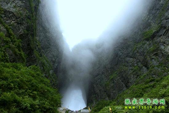 在古老的中國(guó)大地上,有一個(gè)人間通往仙界桃源的大山,武陵山脈之魂——天門山。您只要從天門山腳登上九百九十九級(jí)石階梯,就會(huì)到達(dá)通往仙界的大門——天門洞。碩大的門洞足夠現(xiàn)代人駕駛飛機(jī)穿越而過,是世界上最高的天然溶洞,該天門洞形成的時(shí)間比唐僧取經(jīng)時(shí)收取的由石頭爆出的大徒弟孫悟空還早500余年(公元263年溶洞形成)。它是天門山中一塊大石塊由于吸聚天地之靈氣噴溥洞開而成。從此,凡人間偉大人物仙逝,該天門山上不管是晴空萬里還是滿天星斗,都瞬間電閃雷鳴,風(fēng)雨交加,猶如天門洞落淚,傾盆而下……淚水沿著絕壁山崖瀑布而瀉,遠(yuǎn)遠(yuǎn)望去,似天上銀河下九洲。這現(xiàn)象至今仍無法開解!