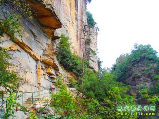 由群仙開宴景點沿石徑蜿蜒而下約200米處,一巨峰于半腰分裂,內可行人,長300米,寬0.1-1米。南側懸崖峭壁,深不見底。北側石壁高50米,抬頭不見其頂。人行其內,如置身空中長廊。廊中虬松懸崖,亂云飛渡,山風呼嘯。廊之東、南和西南三面峰立如林,或如城墻,或加堡壘,各呈奇舉。