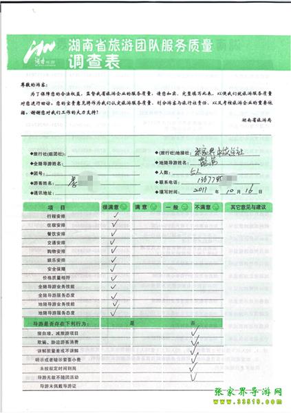 2011年10月16日李先生一行5人旅游質(zhì)量反饋